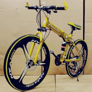 Sunspeed Skyride BMV X6 Foldable Cruiser Bicycle | 21-Speed Gears | Dual Disc Brakes | Dual Hydraulic Suspension | Carbon Steel Frame | 26-Inch City Ride Bike | Yellow