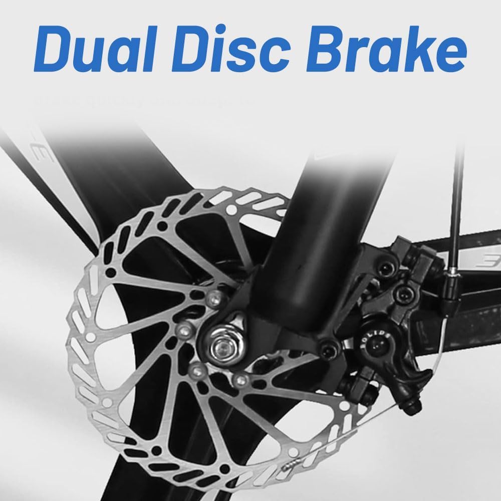 • ✅ {Dual Disc Brakes} :: This bike features dual disc brakes on both the front and rear wheels, providing superior stopping power and control. These brakes are more effective than traditional V-brakes, ensuring you can stop safely and quickly, even on steep descents or in wet conditions.